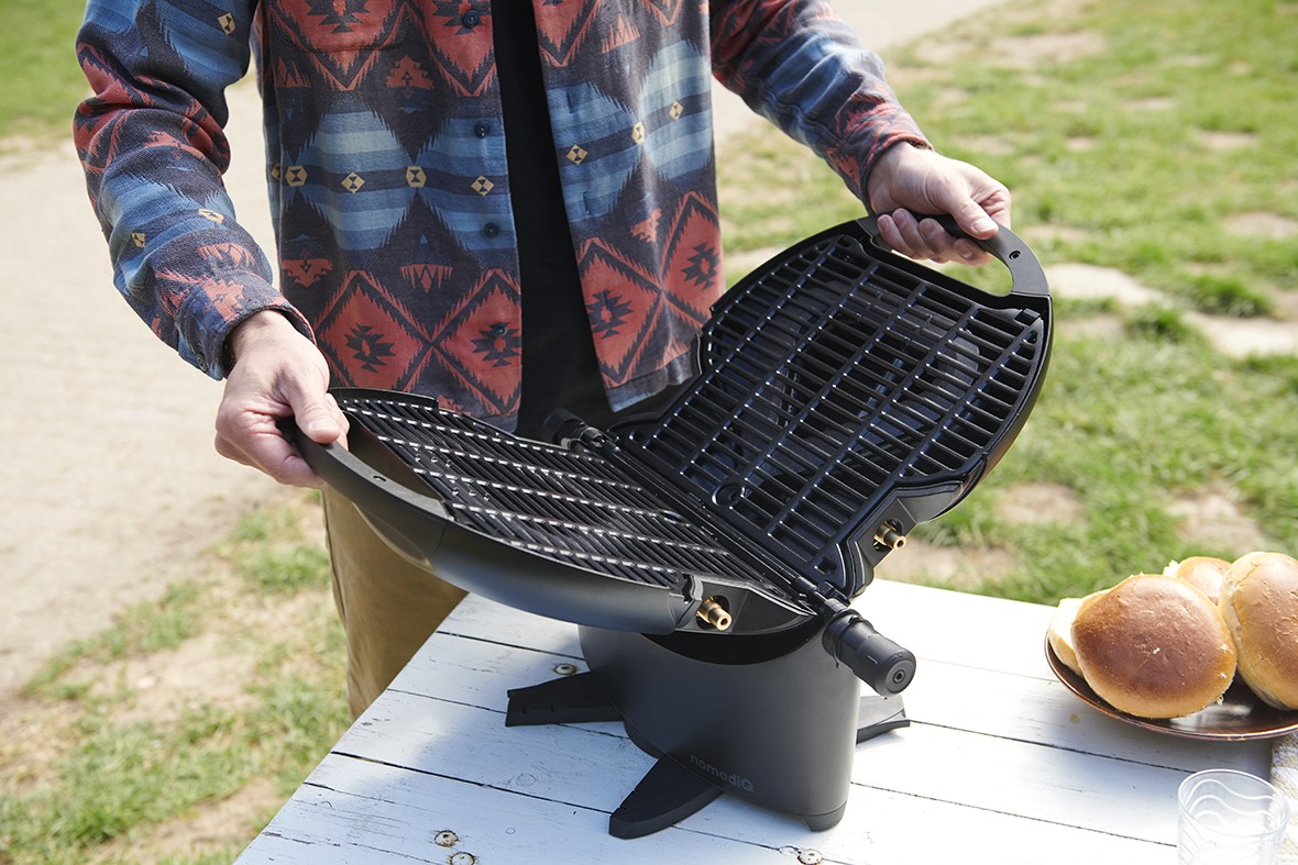 Ooit begonnen we met een wegwerp-ding. Die vonden we heel onhandig en ruilden we snel in voor een andere. Zo’n grote met verschillende grillplaten. Super handig, zou je denken. Maar weet je, in de praktijk hebben we tijdens het kamperen al die uitgebreide mogelijkheden helemaal niet nodig. Terwijl de spullen wel ruimte in beslag nemen. Neem dan bijvoorbeeld de nomadiQ BBQ. Deze draagbare gasbarbecue klap je zo uit op tafel en binnen een minuut kun je aan de slag. En wat helemaal handig is aan deze BBQ, is dat de temperatuur van de twee oppervlakten afzonderlijk in te stellen is. Zo kun je op de ene kant het vlees grillen, terwijl je op de andere kant je pasta kookt. Dit maakt de nomadiQ BBQ ideaal voor kampeervakanties, maar ook voor een dagje strand. Of zelfs een avontuur op de fiets, want met slechts 5,6 kg en de meegeleverde schouderband slinger je de BBQ zo over je schouder mee.