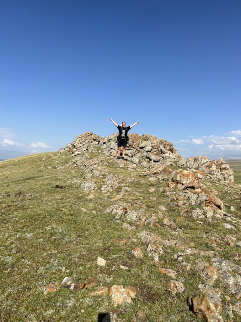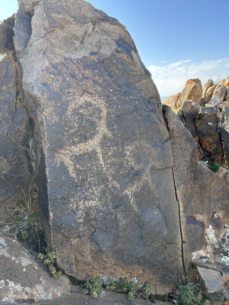 De omgeving is perfect voor wandelingen. Een aanrader is de Peak Connewitz wandeling: vanaf de weg is het ongeveer 45 minuten lopen naar de top, waar je stapels stenen vindt en een panoramisch uitzicht hebt. Geen wegwijzers of pijltjes, je wandelt hier gewoon helemaal vrij! Onderweg kom je al na 10 minuten de eerste petroglieven tegen. Dat zijn eeuwenoude rotstekeningen die de trots van Kirgizië zijn.