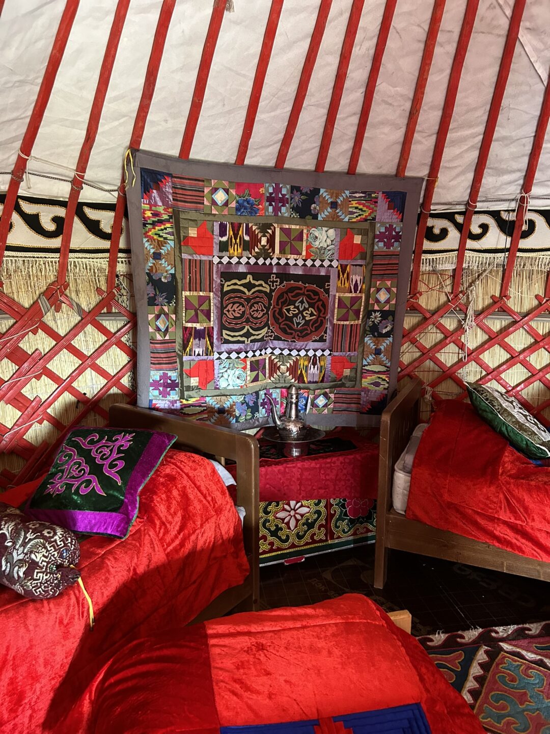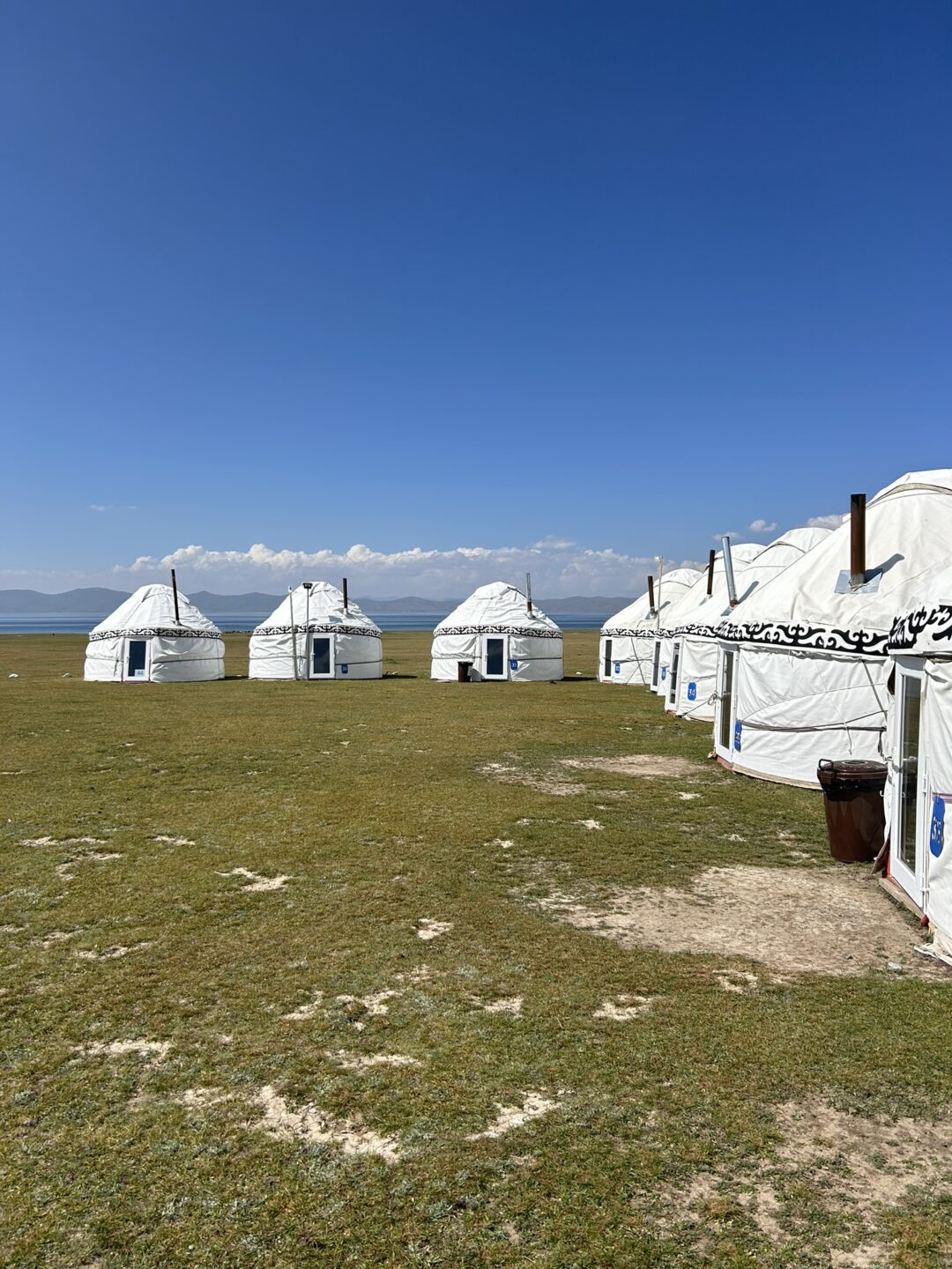 Wij verbleven in het yurtkamp van Ak Sai Travel, direct aan het meer. Het kamp bestaat uit ongeveer 50 yurts, maar tijdens ons verblijf waren er slechts twee groepen toeristen. Dat gaf ons het gevoel dat we het paradijs voor onszelf hadden. (En stiekem hoop ik dat het altijd zo rustig blijft; daar schuilt extra magie.) De yurts zijn eenvoudig maar comfortabel, en het ontbreken van moderne luxe zoals elektriciteit, WiFi en warm water draagt juist bij aan de charme van deze plek.