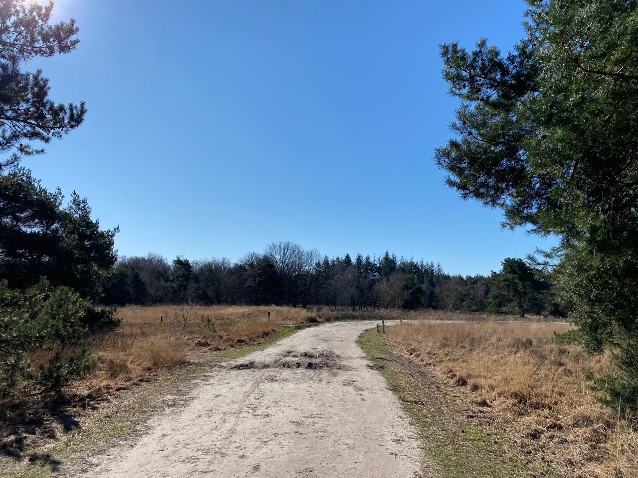 Wil je een kortere route, kies dan de witte of de gele pijltjes, beide zo’n 4 kilometer. Ook dan kom je langs een aantal vennen.