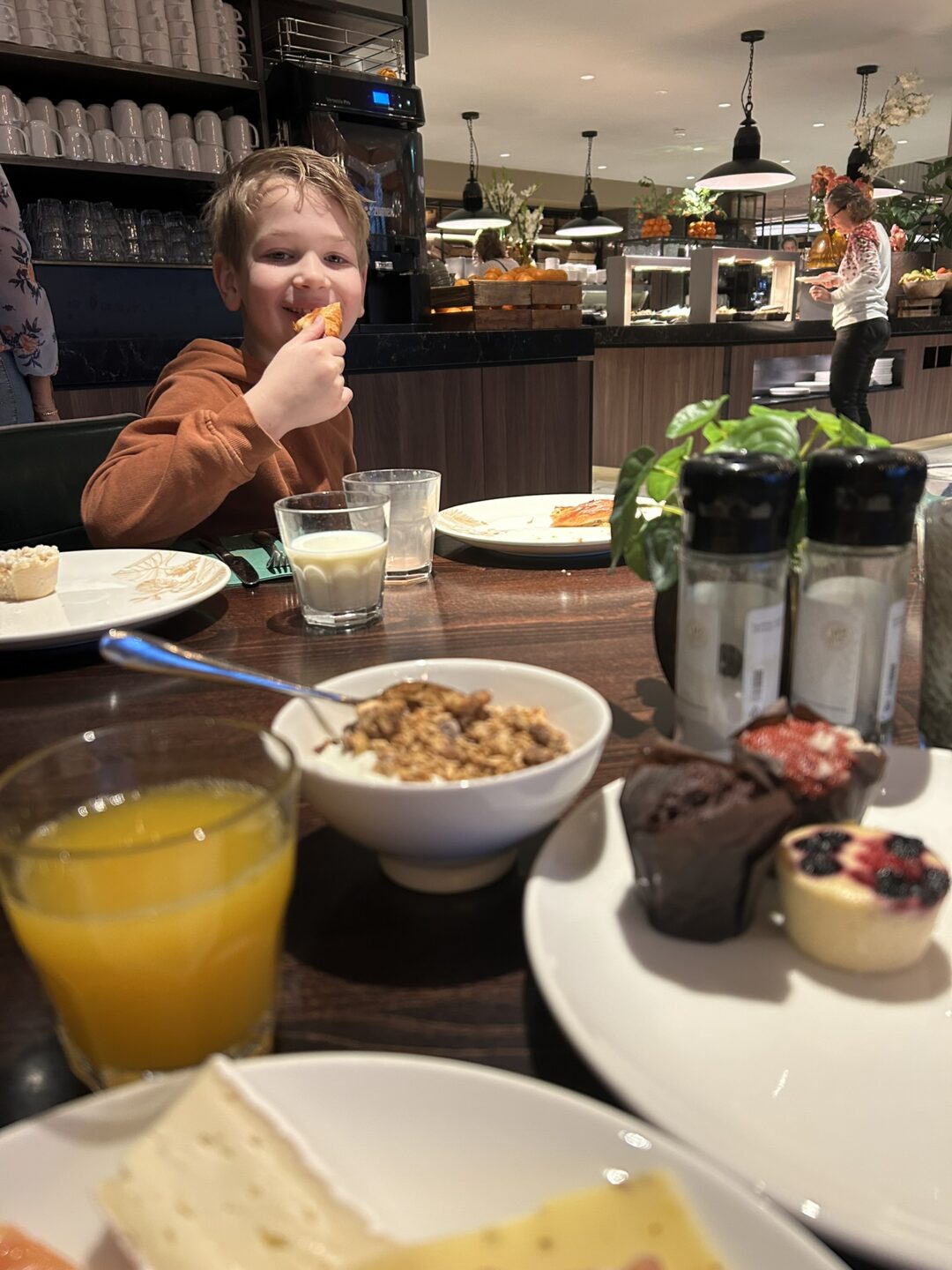 Een ander detail dat we heel fijn vonden: uitchecken kan tot 12 uur. Dat geeft ruimte aan je ochtend. Geen haast, nog even ontbijten. Nou ja, even… Oh wat is het ontbijtbuffet uitgebreid! Diverse soorten broodjes, beleg, eiergerechten, salades, fruit, yoghurt, granola, je kunt het niet bedenken of het is er.